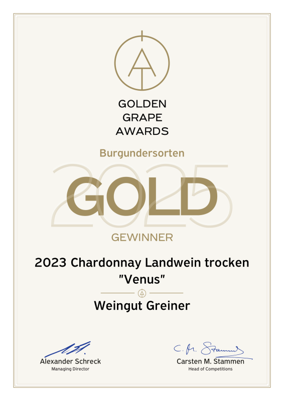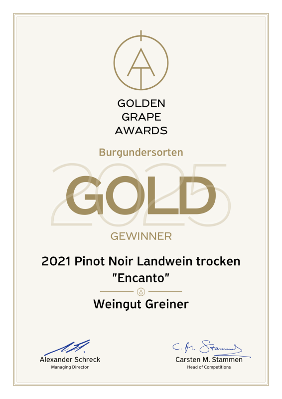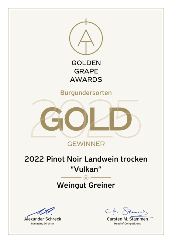 beim großen „GOLDEN GRAPE AWARDS 2025 – Burgundersorten“ 4 Mal PREMIUM GOLD erreicht zu haben für: